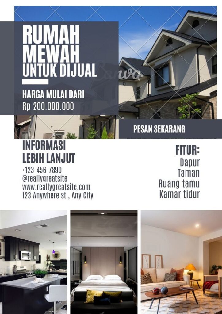 Ada banyak contoh desain poster rumah dijual yang dapat Anda jadikan inspirasi. Berikut adalah beberapa gaya yang populer: